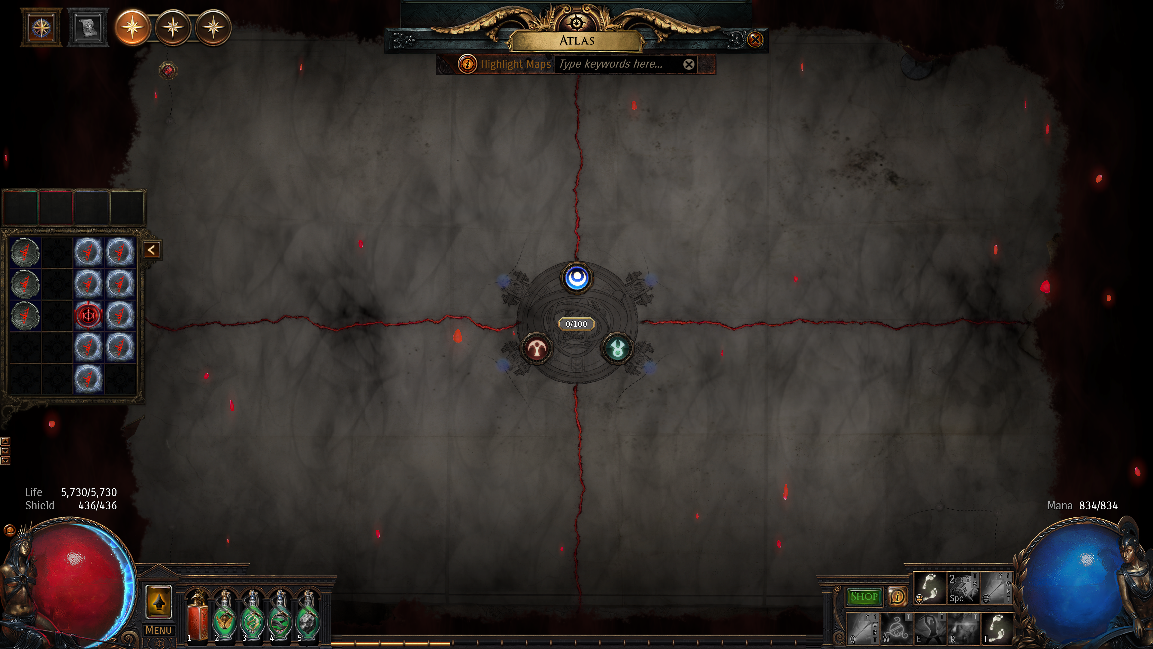 Atlas map in standard for me is like apng image. I cannot interact with it except removing the voidstones. I did two maps and got 100/100 and 133 atlas point. But after that I cannot open any more maps. I click, double click, left click, right click, anywhere and everywhere and no interactions. That little menu with the map slot and the scarab slots doesnt open anymore.