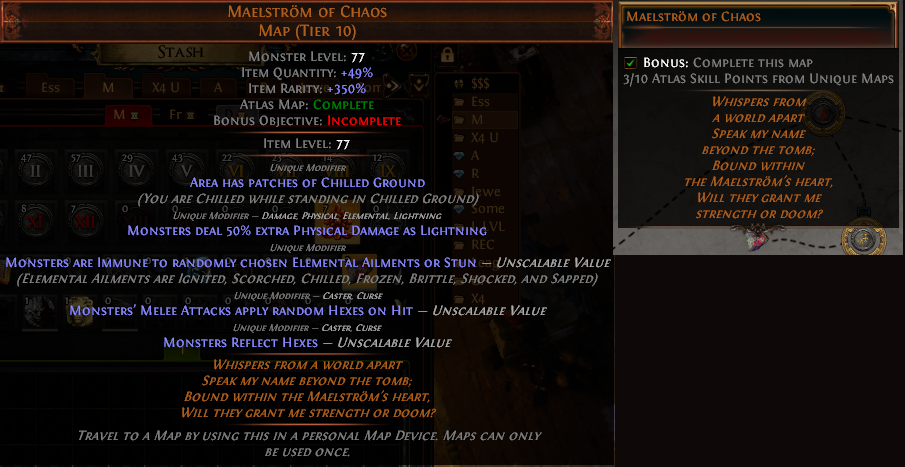 To replicate: complete a legendary map, check on the atlas that it says "bonus objective complete" on it.