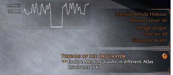 Problem: Spike ping from an instance to another instance or remain high ping in all instances even though menu shown <30ms. It immediate became 300ms+ when in game (ie: from HO area entered to map, lab, etc) Magnitude: <30ms (normal) | 200-400ms (unplayable) | 300ms ramping up to few Kping (logged out) Benchmark connection: When tested with Dota2 server SEA return <20ms ping in menu and in game. ![]() anyone from SEA faces this problem? got solution? Last bumped on Mar 23, 2026, 3:05:00 PM